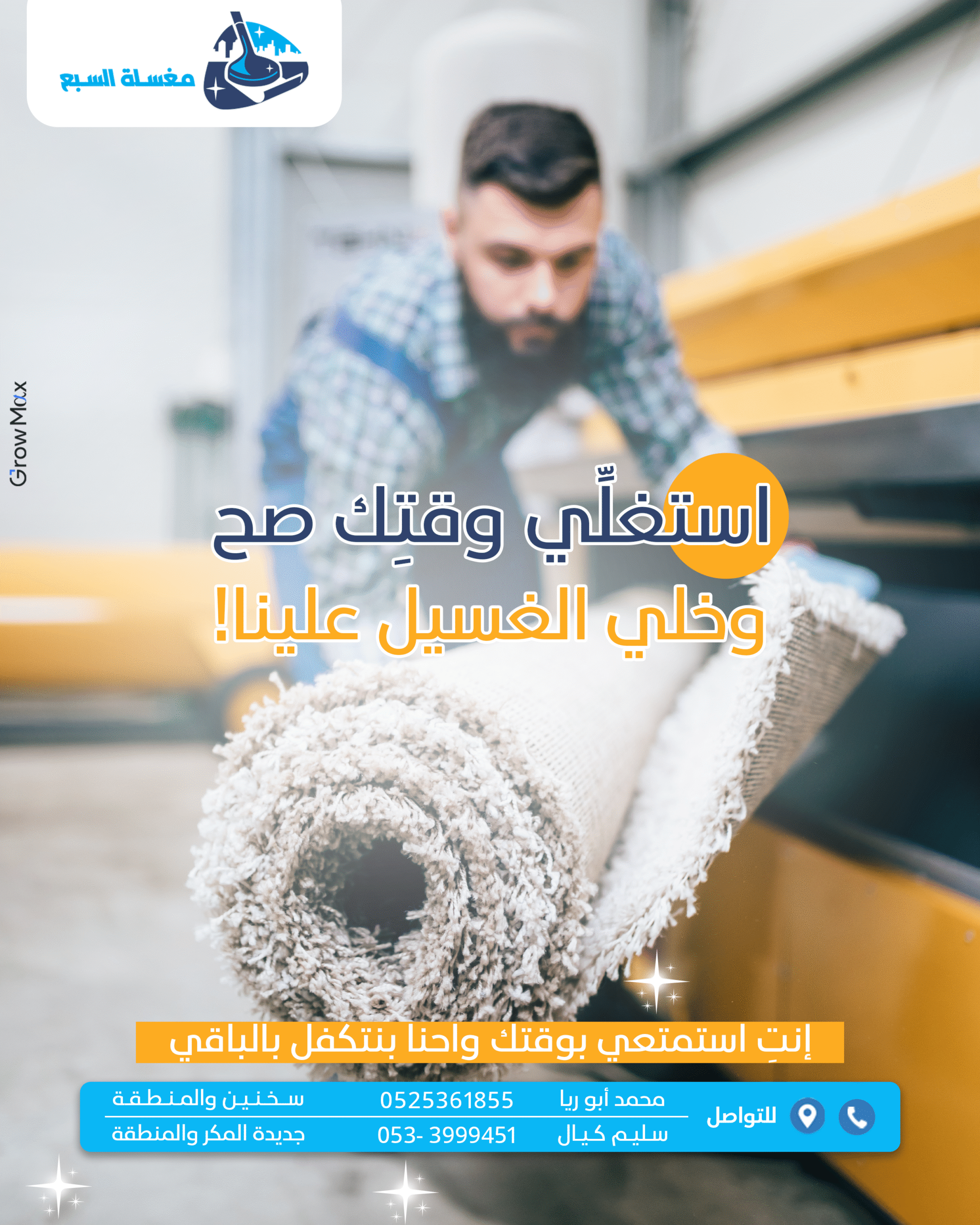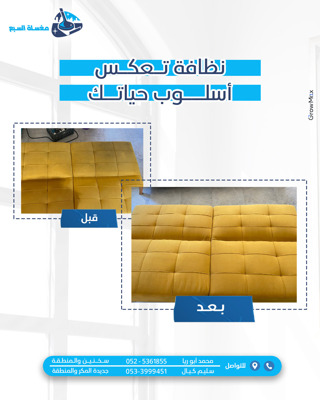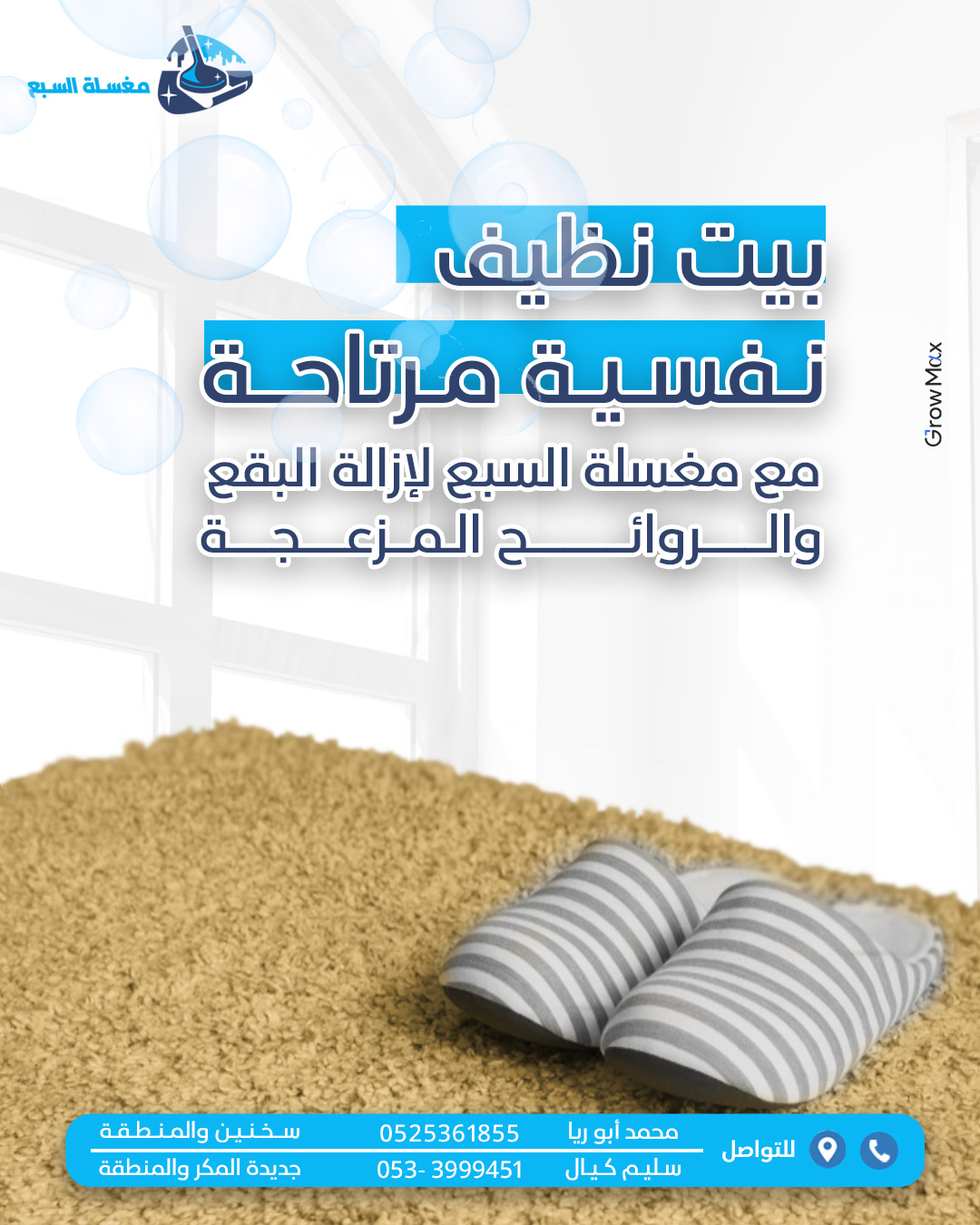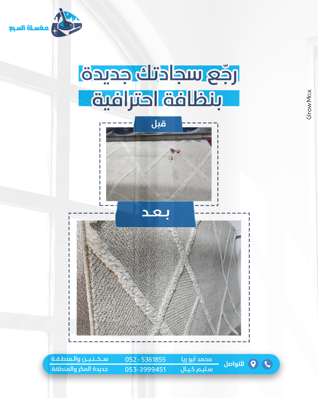 מכבסת אל-סבא' היא עסק משפחתי המתמחה בשירותי ניקוי מקצועיים של שטיחים, ספות, וילונות, מזרנים, ריפודים, בגדים, שמיכות, כיסאות ילדים, ריפודי רכב ועוד. העסק פועל בסכנין ובאזורים נוספים בצפון הארץ, ומציע שירותי ניקוי גם בבית הלקוח, כולל פירוק והרכבה של וילונות.