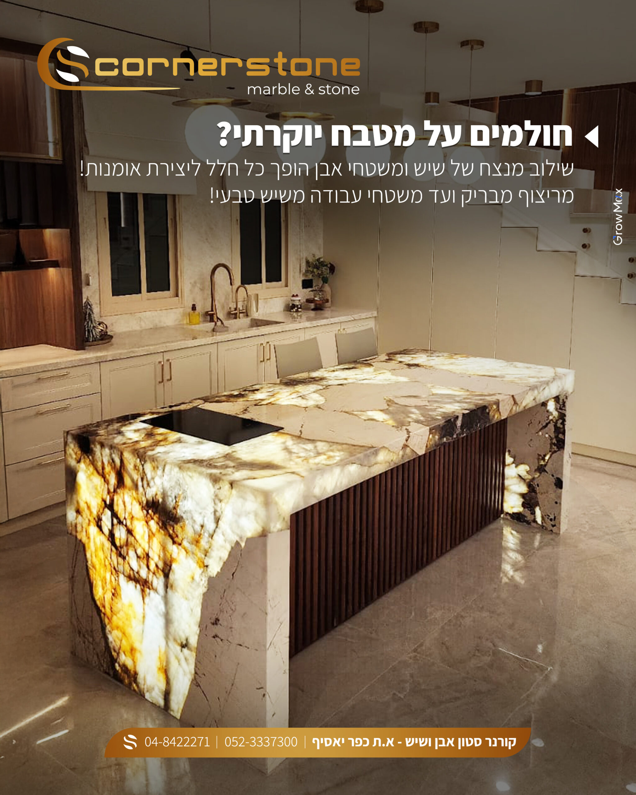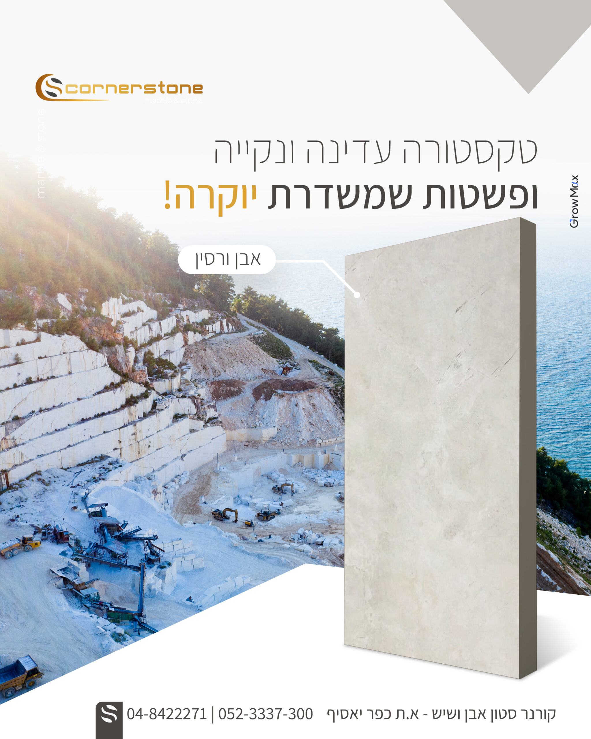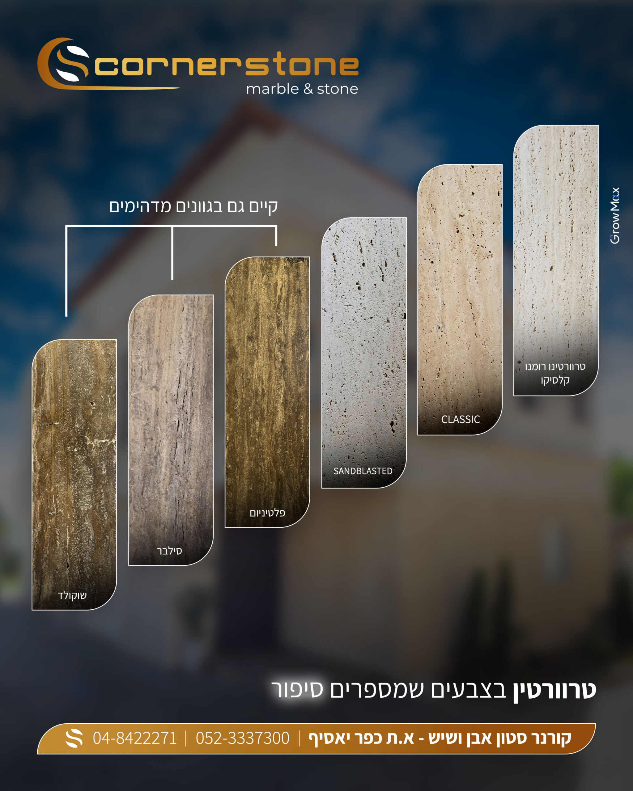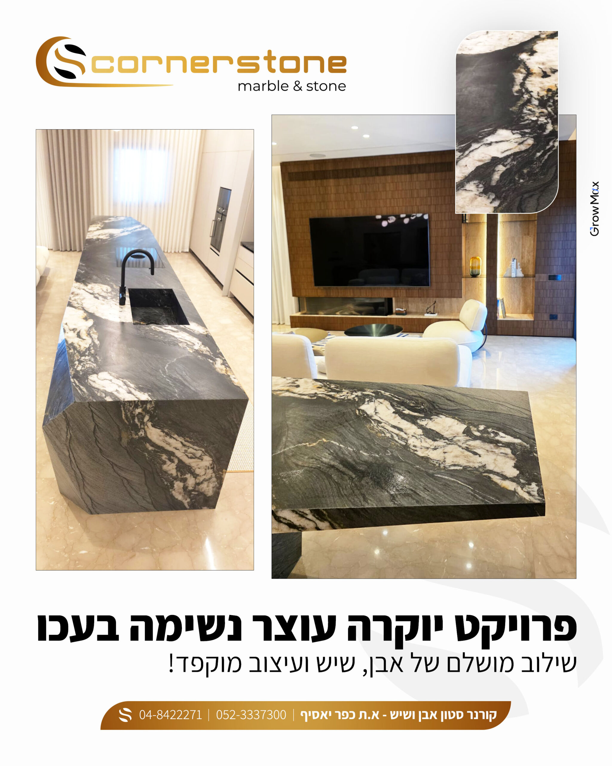 ב־Corner Stone אנחנו חיים ונושמים אבן טבעית. החברה מתמחה בייבוא, עיבוד והתקנה של שיש ואבן יוקרתיים לפרויקטים פרטיים, מסחריים וציבוריים. מהחזיתות האדריכליות המרשימות ביותר ועד משטחי מטבח וסביבות מגורים מוקפדות – כל פרויקט שלנו נבנה מתוך חזון עיצובי, דיוק טכנולוגי ותשומת לב מלאה לפרטים הקטנים.